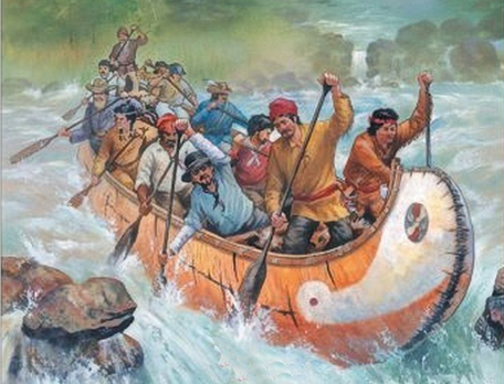 Many French canoes measured over thirty feet long and often carried an eight-man crew. They could and often did carry a cargo of furs and provisions weighing over 6,000 pounds. The French and English settlers used these sturdy canoes well into the early 1800s.